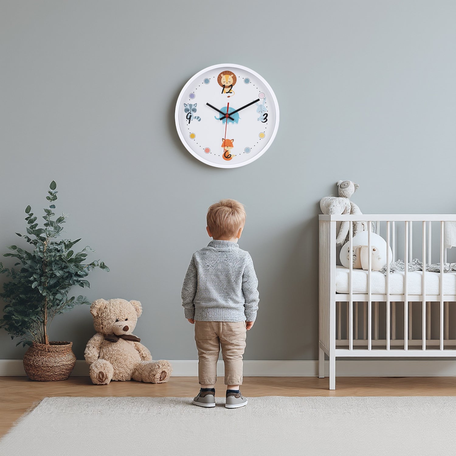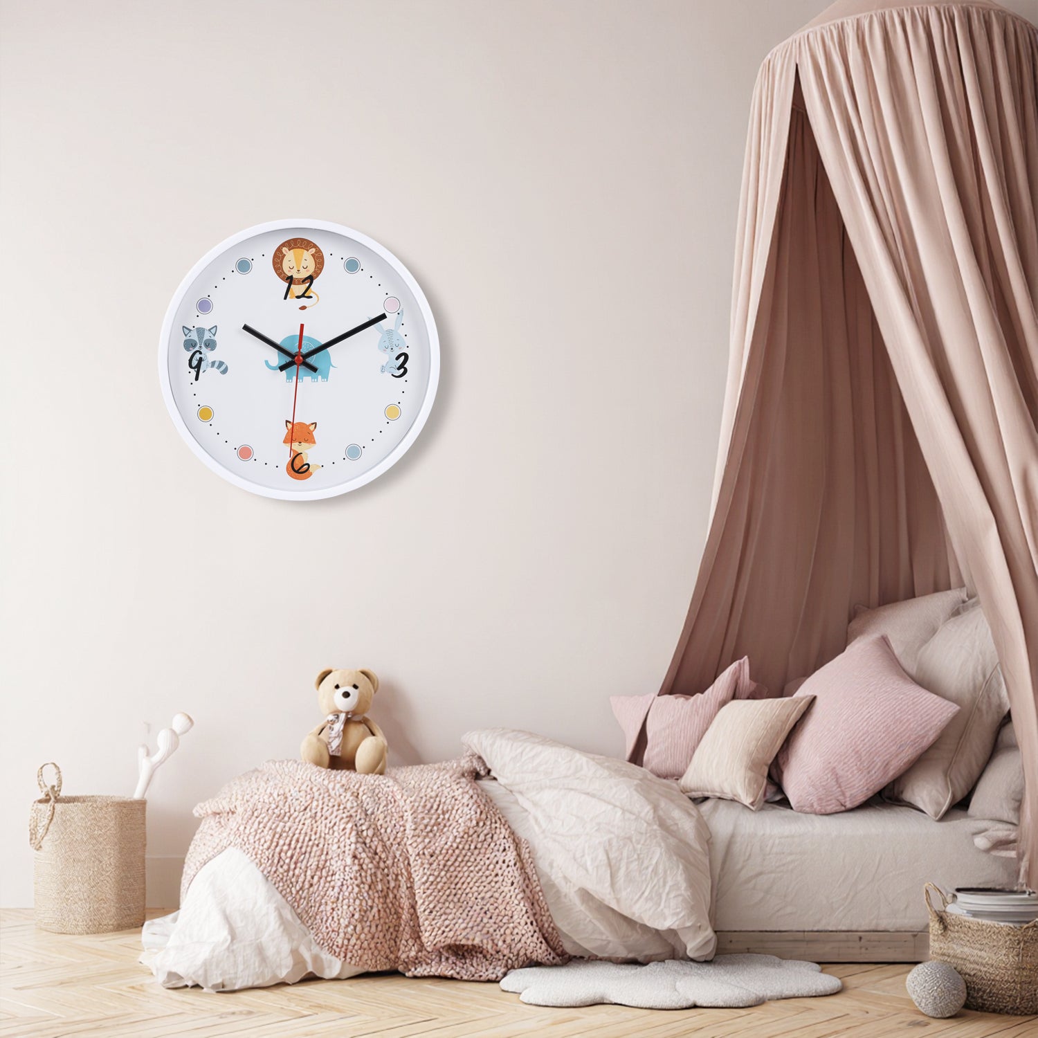 Kids Room Wall Clock Animal Theme - Playful Room Decor (25cm diameter)