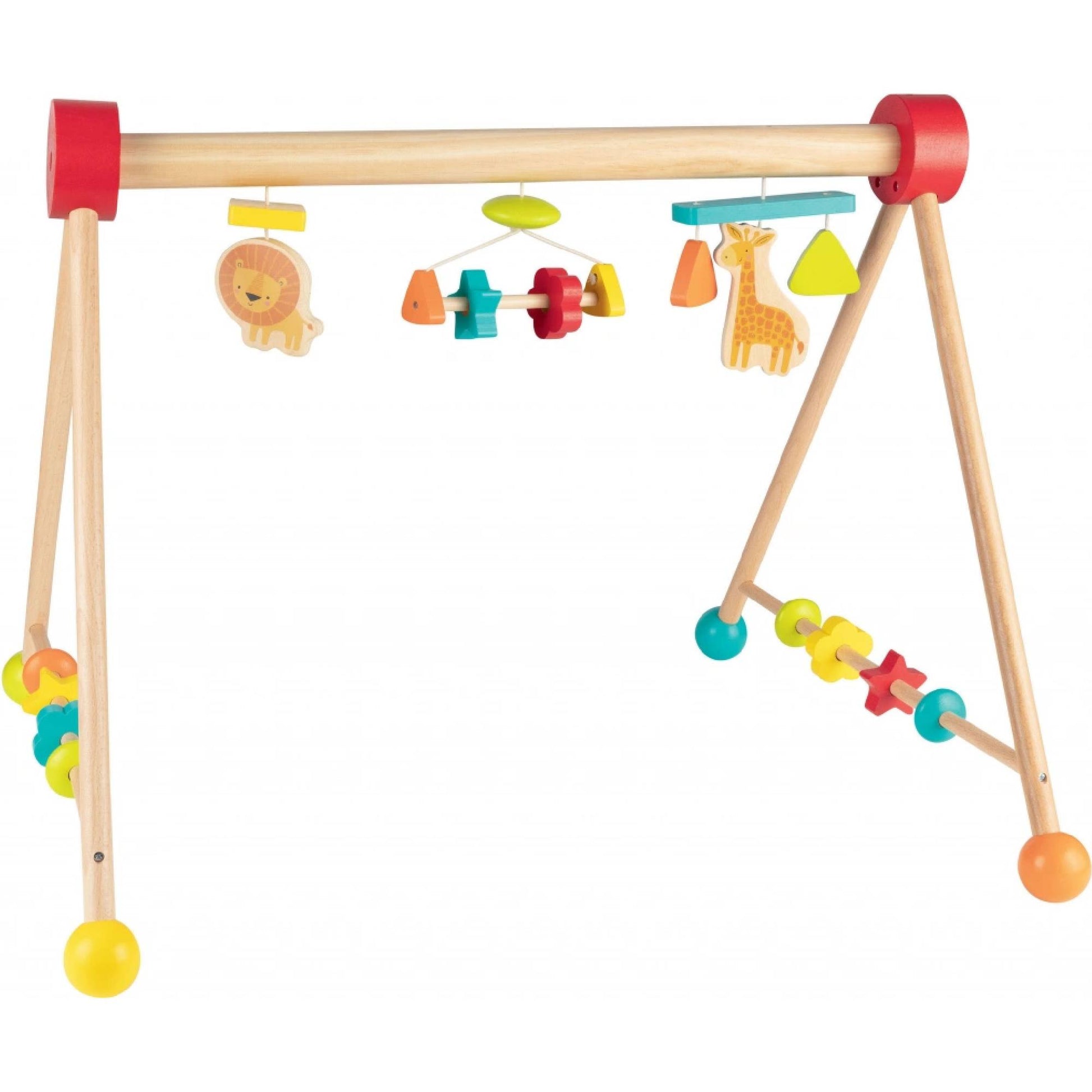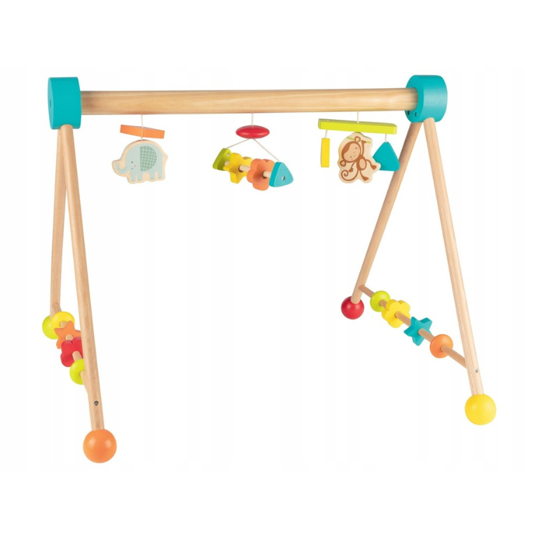 Supports children's development at an early age in a playful way with 3 pendants and 8 wooden moulds on the sides for turning. Suitable for children from birth.