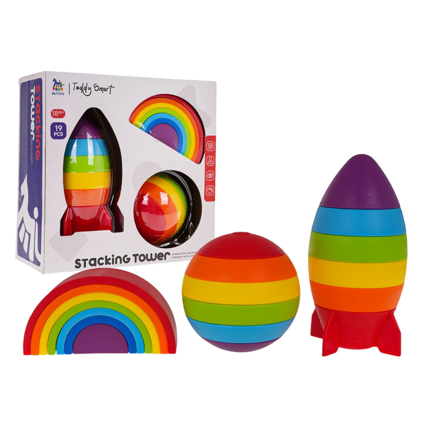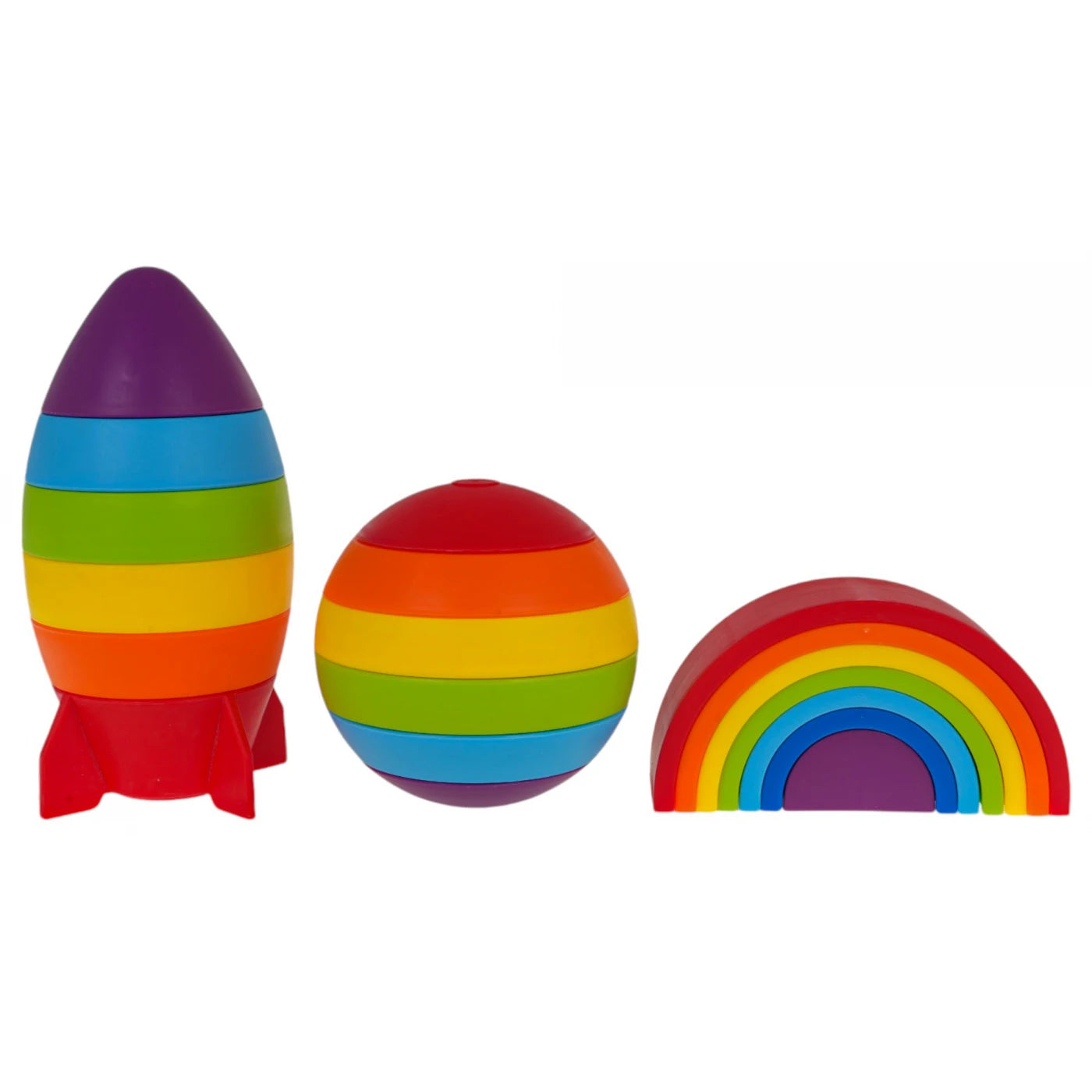 A set of sensory toys is an excellent proposition for children from 18 months of age, which combines play with the development of senses and manual skills. The set consists of elements in vivid colors, allowing you to arrange a racket, rainbow and ball. Thanks to a variety of shapes and textures, toys stimulate the imagination and encourage creative play.